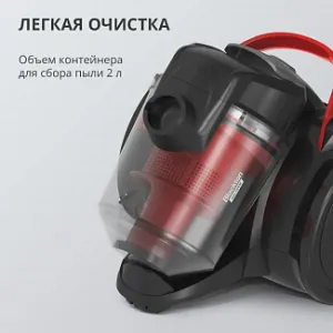 Устройство компактно и удобно в использовании, а его безмешковая конструкция позволяет легко удалять загрязнения, обеспечивая высокую степень гигиеничности. Вместимость контейнера для пыли составляет 2 литра, что делает его идеальным для регулярной уборки как небольших, так и больших помещений.