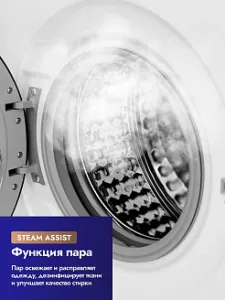Активный пар - специальный паровой режим, позволяющий устранить впитавшийся запах и разгладить легкие складки без применения моющих средств. Под воздействием высокой температуры уничтожаются вирусы, бактерии и даже аллергены. Данный режим чаще всего используют для освежения вещей. Помещенная в барабан одежда при исключительно паровой обработке не намокает. Встроенный нагреватель превращает жидкость в пар, который и подается из отверстий в барабане стиральной машины.