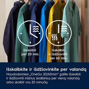 «OneGo 20/60мин» — стирка и сушка всего за один час.