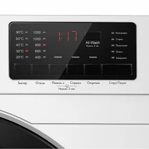 Дополнительные режимы Стирка+, Полоскание+, AI-wash (ИИ-стирка), Отложенный старт