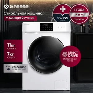 Стиральная машина Gressel способна вместить до 11 килограмм белья за счет специальной формы барабана. А за счет увеличенного пространства в баке можно стирать большие пледы, одеяла или просто много одежды, что сократит количество стирок и сэкономит Вам потребление воды и электроэнергии.