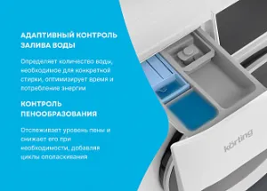 В зависимости от количества белья и его способности впитывать влагу, объем воды, необходимый для стирки, может отличаться. Благодаря системе адаптивного залива, стиральная машина самостоятельно определяет, какое количество воды необходимо, а также оптимизирует время и потребление энергии, что помогает оптимально использовать ресурсы.