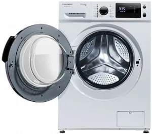 Отдельностоящая стиральная машина с инверторным мотором мощностью 2000 Вт. Белый цвет корпуса идеально сочетается с черным тонированным стеклом загрузочного люка и дисплея. Бак сделан из экокарбона, а барабан – из нержавеющей стали.