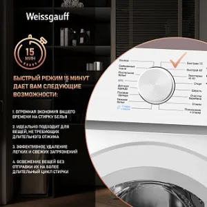 - Режим Быстрая стирка 15 минут - это по-настоящему фантастическая программа для тех, кто умеет ценить своё время!