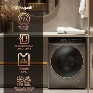 - Функция "Пар" (SPA) - это инновационное решение от компании Weissgauff, которое позволит придать свежести вещам, а также устранить неприятный запах, легкие загрязнения и складки на одежде, бережно сохраняя при этом структуру волокон ткани. При выборе режимов, имеющих в своем цикле данную функцию, пар добавляется в ходе цикла в процессе работы программы!