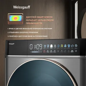 Отдельностоящая стиральная машина Weissgauff с функцией сушки, выполненная в цвете "серебристый металлик", оснащенная прямым приводом, инверторным двигателем и функцией пара, имеющая показатели загрузки до 11 кг белья при стирке и до 6 кг белья при сушке, скорость отжима до 1400 оборотов в минуту, а также цветной дисплей SMART SCREEN, функции автодозирования и озонирования - это одна из наиболее передовых моделей Weissgauff в категории стиральных машин!