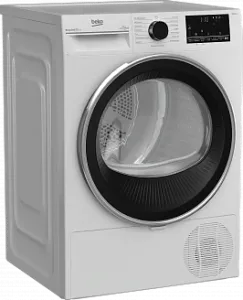 Сушильная машина Beko работает с помощью теплового насоса. Благодаря этой технологии машинку не надо подключать к вентиляции. Воздух циркулирует внутри, постоянно охлаждаясь, затем нагреваясь, и таким образом высушивает одежду.