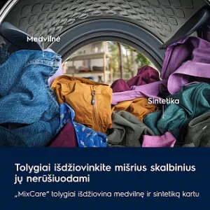MixCare обеспечивает мощную, но бережную сушку смешанных хлопчатобумажных и синтетических тканей, поэтому одежда высушивается равномерно, не сортируясь.