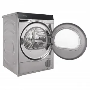 Технология Heat Pump схожа с принципом холодильника, только наоборот: внутри прибора компактно размещаются два важных элемента – горячий и холодный контуры. Задача горячего контура - нагреть воздух, который далее, при помощи вентилятора, попадает в барабан и забирает влагу из мокрых тканей. Второй активный холодный контур эту влагу собирает и отправляет в съемный резервуар. Такая технология позволяет меньше нагревать воздух, что помогает сушить вещи деликатнее и существенно снижать потребление электроэнергии. Температура нагрева тканей не превышает 50°C – вещи не подвергаются лишней термической обработке. Потребление электроэнергии у такого прибора существенно ниже обычных конденсационных аналогов.