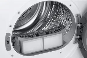 Ухаживайте за вашей сушильной машиной с легкостью. Эффективный двухступенчатый фильтр представляет собой двухслойный сетчатый фильтр. Вам не потребуется обслуживать другой труднодоступный фильтр теплообменника. А двойной звуковой сигнала напомнят вам о необходимости очистки фильтра.