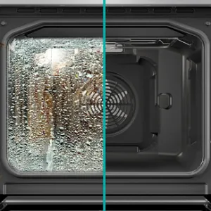 Функция AquaClean — ощутимая помощь в очистке рабочей камеры. Все, что требуется, — это налить 0,5 литра воды в противень и включить функцию AquaClean. Через 30 минут результаты видны на внутренних стенках духовки и противнях. Загрязнения и жир размягчаются, и их остается просто протереть.