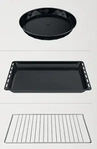 1 стандартный противень, 1 хромированная решётка, 1 круглый Diamond противень, инструкция по эксплуатации, сертификат, гарантийный талон