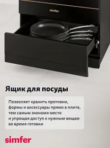 Особенности духовки, плиты: Ящик для посуды, Хромированные направляющие