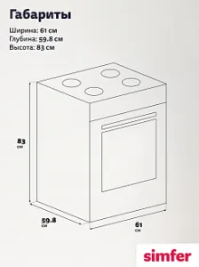 Размеры, мм: 600 x 610 x 830