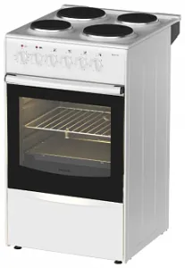 Плита электрическая с 4 чугунными электроконфорками, стиль классический, терморегулятор, пятипозиционный переключатель режимов жарочного шкафа, ступенчатые переключатели режимов работы электроконфорок, освещение, хозяйственный отсек. Плита укомплектована уникальным комплектом "Exstra effect", регулируемыми опорами. Класс энергопотребления "А".