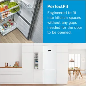 Система идеального расположения PerfectFit сохраняет драгоценное место на кухне. Холодильники VitaFresh могут быть установлены на кухне вплотную к мебели и стенам, без зазоров сзади и сбоку. Кроме того, дверца холодильника открывается на 90 градусов, не требуя дополнительного пространства, при этом ящики, находящиеся внутри, легко вынимаются. С холодильником Bosch площадь кухни используется максимально рационально.
