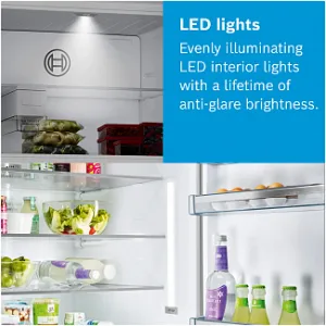Светодиодная подсветка привносит в холодильник Bosch VitaFresh совершенно новую концепцию освещения, гарантируя равномерное освещение всего пространства без бликов. Светодиодные лампы потребляют меньше электроэнергии, чем обычные лампы накаливания, и служат в течение всего срока службы прибора.