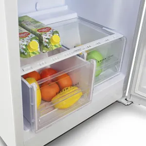 Полки в холодильной камере изготовлены из закаленного стекла и выдерживают нагрузку до 40 кг.