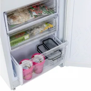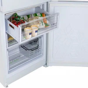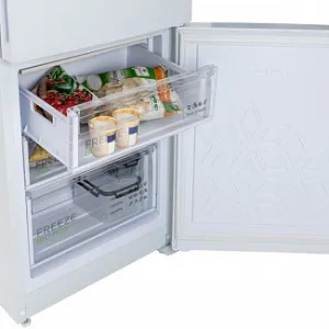 Полки в холодильной камере изготовлены из закаленного стекла и выдерживают нагрузку до 40 кг.