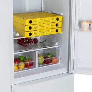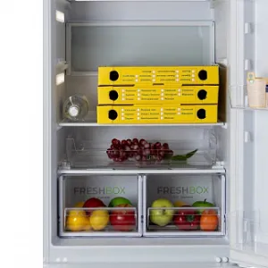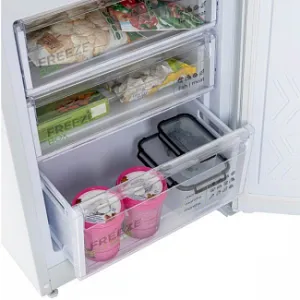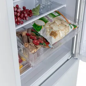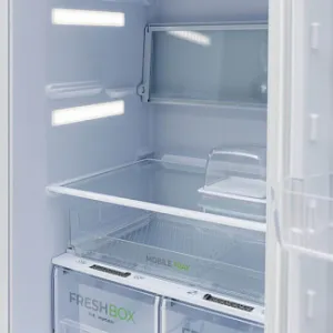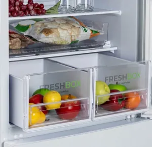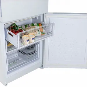 Полки в холодильной камере изготовлены из закаленного стекла и выдерживают нагрузку до 40 кг.