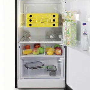 Полки в холодильной камере изготовлены из закаленного стекла и выдерживают нагрузку до 40 кг.