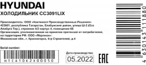 Холодильник HYUNDAI CC3091LIX – рациональный выбор для сохранения свежести и питательных веществ в продуктах и готовых блюдах. Это двухкамерный прибор с нижним морозильником объемом 94 л. Имеет функцию суперзаморозки с производительностью 4 кг/сут. В холодильной камере, оборудованной полками из закаленного стекла, задействована функция суперохлаждения. Устройство относится к классу А+ по энергопотреблению. Оно невелико, и в год не превышает 301 кВт*ч. В холодильной камере применяется капельное размораживание, а в морозильнике – система LowFrost, существенно замедляющая процесс образования инея и позволяющая экономить на затратах на электроэнергию. Перевешиваемые двери позволяют открывать холодильник влево или вправо с учетом планировки и площади кухни.