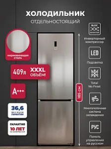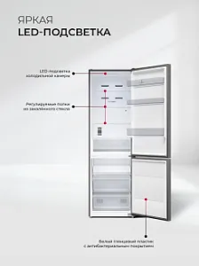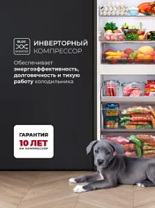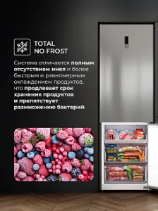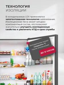 Холодильник LEX LKB185 оснащен современным инверторным компрессором, который гарантирует эффективную и практически бесшумную работу. Он также обеспечивает низкий расход энергии и долго поддерживает температуру без электропитания. Технология Total No Frost значительно упрощает обслуживание и помогает устанавливать оптимальную температуру и влажность.