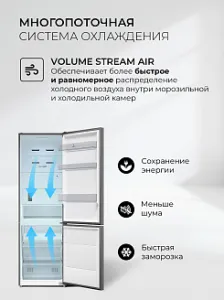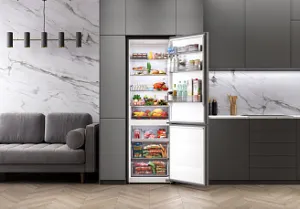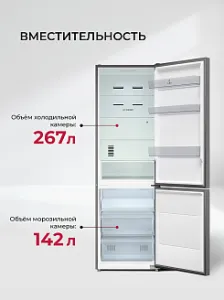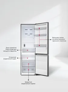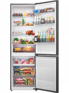 Два отделения с полезным объемом 409 литров дают возможность хранить все блюда и напитки на удобном уровне. Внутреннее пространство холодильника организовано максимально эффективно благодаря регулируемым полкам.