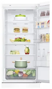 С нулевым зазором холодильник LG можно ставить вплотную к стене и открывать дверь на 90°. Благодаря этому ящики выдвигаются беспрепятственно.