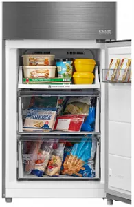 В холодильниках Midea используется технология Full NoFrost, которая предотвращает образование наледи и инея на полках, стенках и на самих продуктах внутри морозильной камеры. Теперь можно забыть об утомительной разморозке и быть уверенными в том, что в контейнерах и на полках нет ничего лишнего - только продукты.