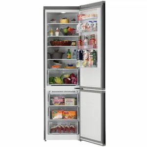 Холодильник с морозильником Weissgauff CBN2WC2C2 представлен в корпусе серого цвета. В модели реализована система Full No Frost. За счет принудительной циркуляции холодного воздуха она предотвращает образование наледи на стенках и необходимость регулярного размораживания. Технология Multi Air Flow перенаправляет потоки холодного воздуха в обеих камерах, сохраняет свежесть продуктов и защищает их от высушивания. Отдельная зона с повышенной влажностью продлевает свежесть овощей, фруктов, ягод, зелени.