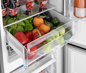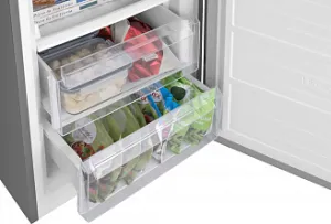- Зона свежести, оснащенная функцией контроля влажности, позволит подобрать оптимальный режим для хранения овощей, фруктов и других продуктов, требовательных к поддержанию особого микроклимата.
