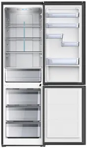 WILLMARK RFN-454DNFD современный двухкамерный холодильник со всеми необходимыми функциями. Модель совмещает в себе стильный дизайн, отличные технические характеристики и высокие эксплуатационные качества. Верхнее расположение холодильной камеры существенно сэкономит ваше время. Данная модель изготовлена по системе размораживания Total NoFrost и не нуждается в ручной разморозке. Двери холодильника перенавешиваемые. В комплекте: форма для заморозки льда на 10 ячеек и три выдвижных ящика для заморозки продуктов, 4 полки регулируютcя по высоте. Полка закрывающая ящик для овощей снабжена регулируемым вентиляционным отверстием. Есть электронный регулятор температуры охлаждения и светодиодная лампа низкого потребления энергии. Наличие дисплея, вынесенного на дверцу, позволит вам следить за состоянием прибора и с легкостью настраивать его! На внутренней части двери холодильной камеры расположены дверные полки регулируемые по высоте.