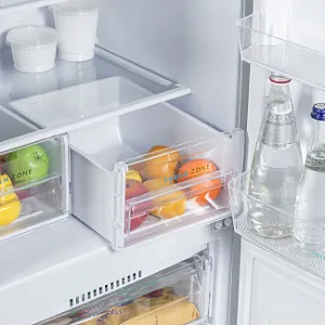 Полки в холодильной камере изготовлены из закаленного стекла и выдерживают нагрузку до 30 кг.