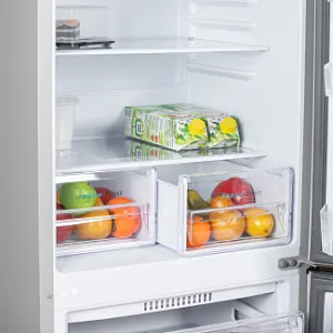 Полки в холодильной камере изготовлены из закаленного стекла и выдерживают нагрузку до 30 кг.