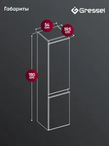 Размеры, мм (ШxГxВ): 540 x 595 x 1800