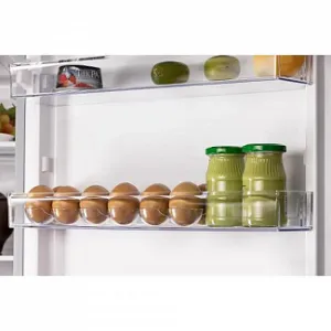 Вентилятор для распределения температуры сохраняет одинаковый климат в верхней и нижней части модели. Морозильная камера вмещает 105 л. Для хранения в нем продуктов предусмотрены три ящика. За счет функции размораживания No Frost она не требует сложного ухода. При отключении электропитания устройство сохраняет температуру до 10 ч.