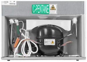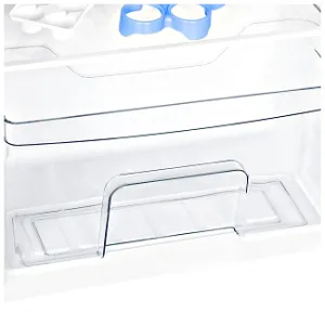 Прибор работает от одного компрессора и использует всего 184 кВт*ч/год, что является A+ классом по энергопотреблению. А значит, что холодильник сэкономит много денег в перспективе. При этом девай работает очень тихо – на громкости около 39 дБ. Такой результат достигается посредством использования современного хладагента R600a. В отличие от устаревших аналогов, он не создаёт излишнего давления на патрубки, поэтому работает тихо. Если сеть неожиданно отключится, продукты внутри данной модели останутся свежими на срок до 7,5 часов благодаря качественному изотермическому корпусу.