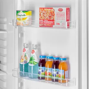 Глубокая полка для бутылок на двери позволяет практично хранить даже большие 2-ух литровые бутылки