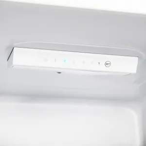 Управление электронное. Кнопки включения/выключения, выбора температуры (+2°C до +8°C) и быстрого охлаждения находятся на дисплее в верхней части холодильника.