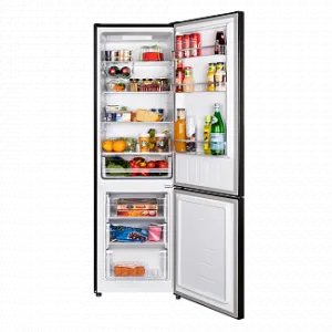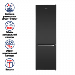 Современный двухкамерный холодильник высотой 176 см с сенсорным управлением.