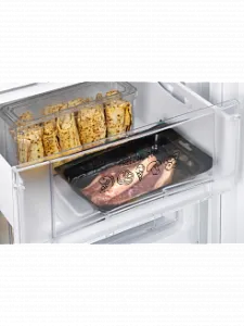2 вместительных выдвижных ящика в морозильном отделении, удобных для размещения мяса, полуфабрикатов и заготовок.