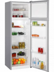 Двухкамерный отдельностоящий холодильник NORD NRT 144 132 с верхним расположением морозильной камеры имеет общий объем 330 литров и высоту 177 см.