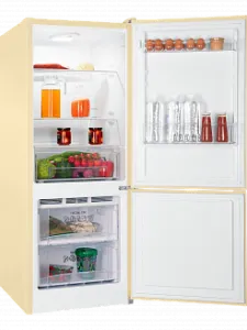 Двухкамерный отдельностоящий холодильник NORDFROST NRB 121 E с нижним расположением морозильной камеры имеет общий объем 240 л.
