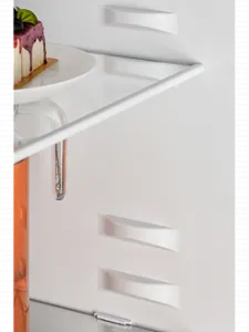Холодильник в современном исполнении подходит под любой дизайн кухни. Горизонтальные интегрированные ручки задают стиль и комфортное пользование устройством.