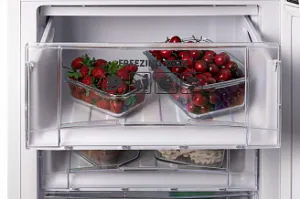 - 3 прозрачных и вместительных ящика в морозильном отделении, где можно длительно хранить большие куски мяса, курицу целиком и другие объемные замороженные продукты;