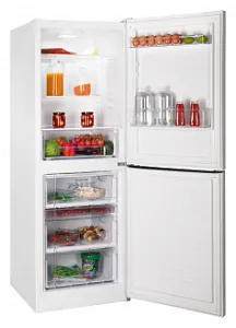 Двухкамерный отдельностоящий холодильник NORDFROST NRB 151 W с нижним расположением морозильной камеры имеет общий объем 285 л.