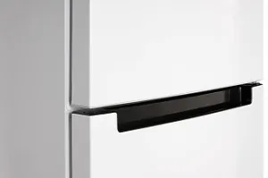 Холодильник в современном исполнении подходит под любой дизайн кухни. Горизонтальные интегрированные ручки задают стиль и комфортное пользование устройством.