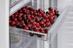 - 3 прозрачных ящика в морозильном отделении позволяют поместить и длительно хранить большие куски мяса, курицу, полуфабрикаты и другие объемные замороженные продукты;