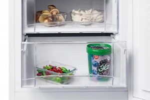 - 3 прозрачных ящика в морозильном отделении: 2 повышенного объема позволяют поместить и длительно хранить большие куски мяса, курицу целиком и другие объемные замороженные продукты;